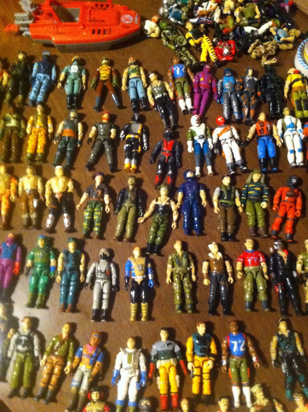 A garage sale was imminent in Henderson, KY. My parents' next-door neighbors had a large box of well-used Joes that belonged to their two sons and were nice enough to give me first dibs on it.Never mind that these were the kinds of Joes and Cobras so heavily played with that many were missing their little plastic penis parts and were caked with late-'80s play slime, among other things.